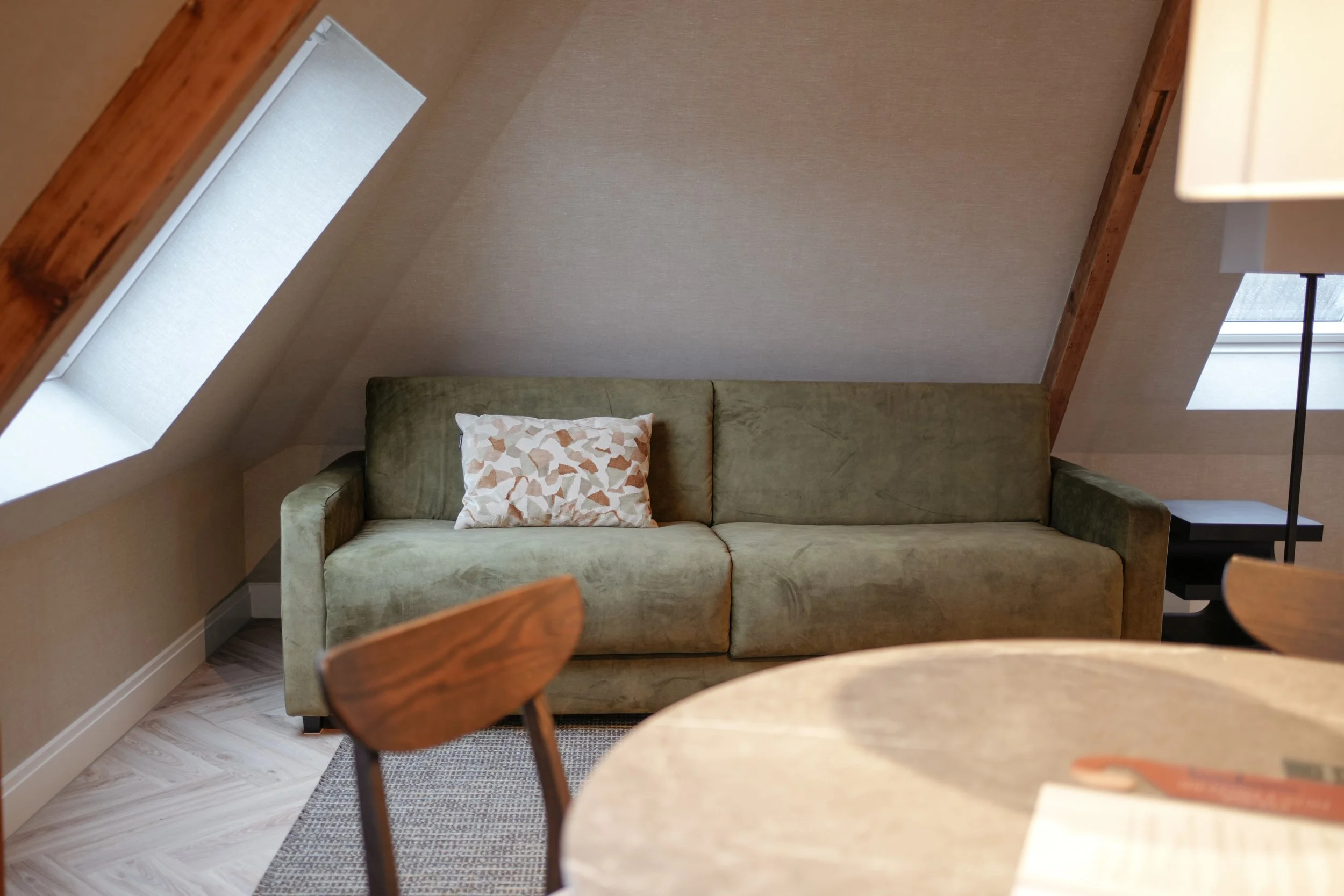 The apartment is contemporary designed and inspired by the Dutch architects of the 20th century creating a warm welcome to your home. All apartments and studios offer large windows, comfy sofas, large TV, dining table and/or desk, kitchen or kitchenette, sizable bathroom, double beds and washing machine with integrated tumble dryer.